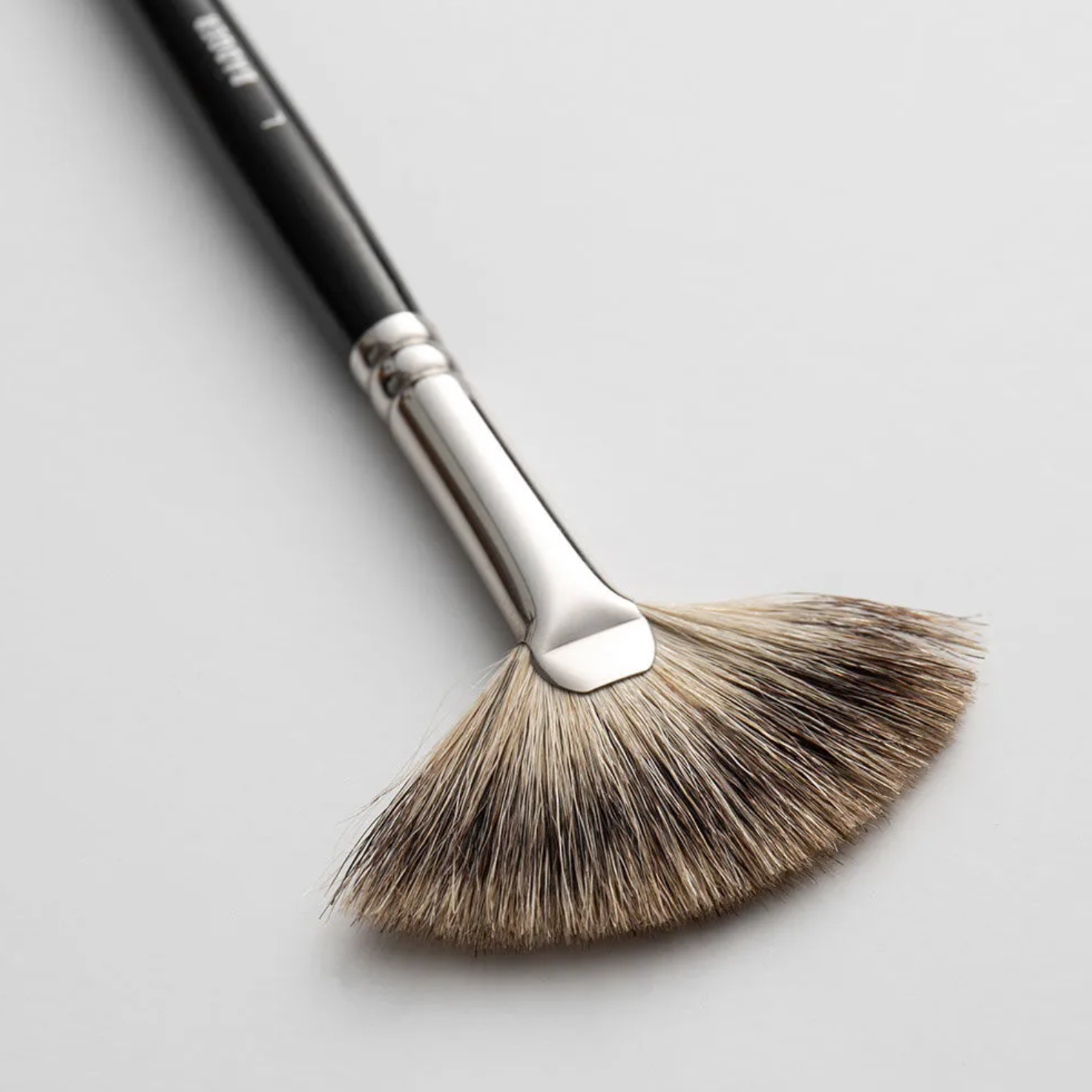 Description: Fan brushes have bristles spread out in a fan shape, making them suitable for creating textures and soft edges.