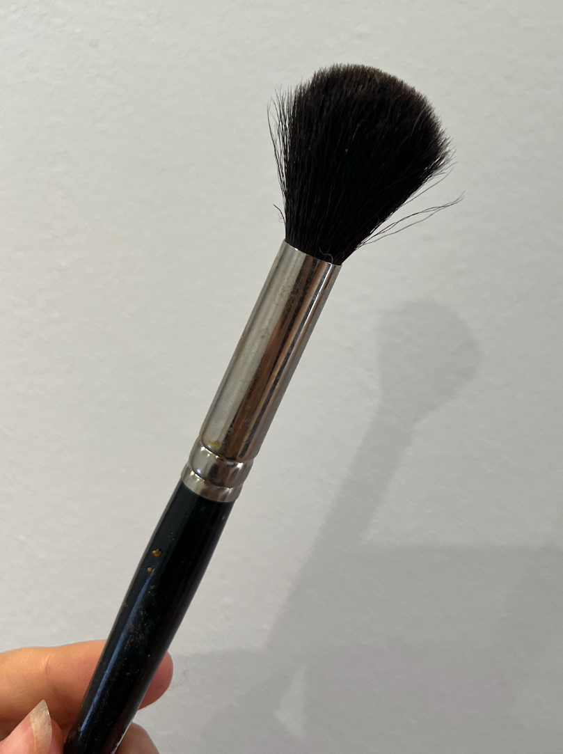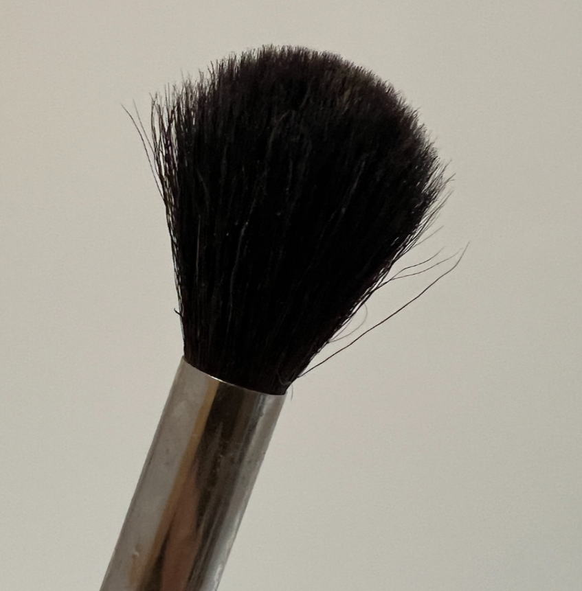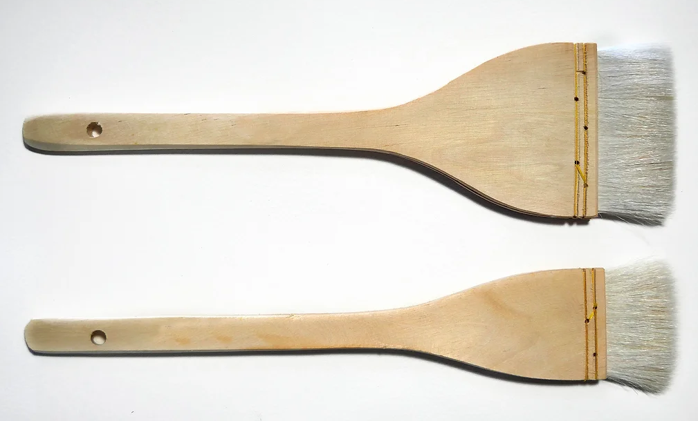 Description: A wide, flat brush traditionally made of soft, natural fibers, typically goat hair.