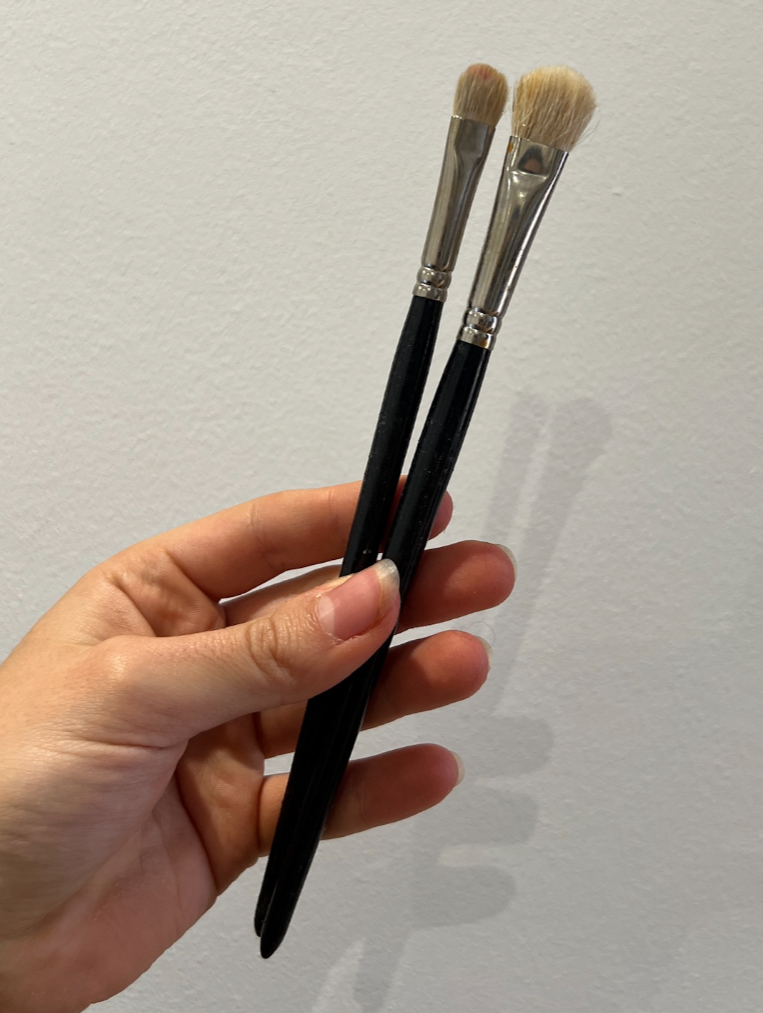 Description: Angled brushes have a slanted edge that allows for both broad strokes and precise lines.