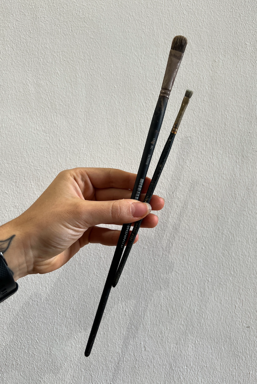 Sable brushes are known for their precision and flexibility, which allows for highly controlled brushstrokes. Red sable brushes are especially valued for detail work, such as spotting or inpainting, which makes them a top choice in conservation (as i have now found out!). Sables are also excellent for blocking in larger areas in oil painting due to their fluidity and ease of movement. While sable brushes can be costly, their performance in detailed work often justifies the investment.