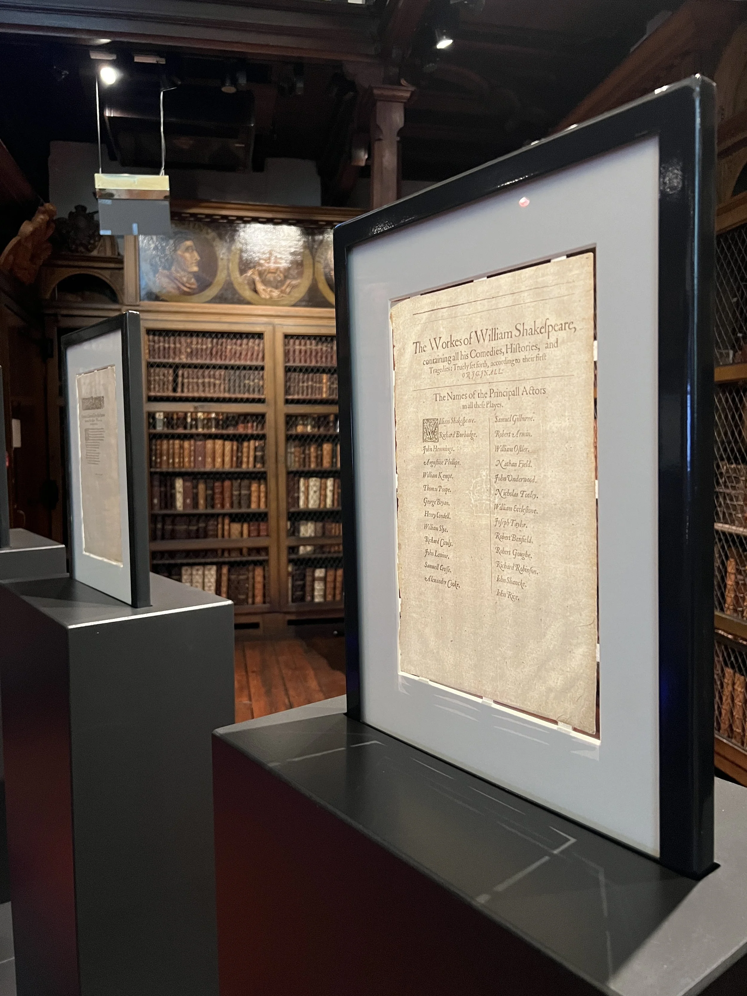 While the narrative of theft and recovery is compelling, the exhibition continually situates Durham’s copy within the larger context of the First Folio’s significance. Published in 1623, the First Folio was the first collected edition of Shakespeare’s plays, printed only seven years after his death. It contained 36 plays, 18 of which, including Macbeth and The Tempest, had never appeared in print before. Without this publication, many of Shakespeare’s most famous works might have vanished from history.